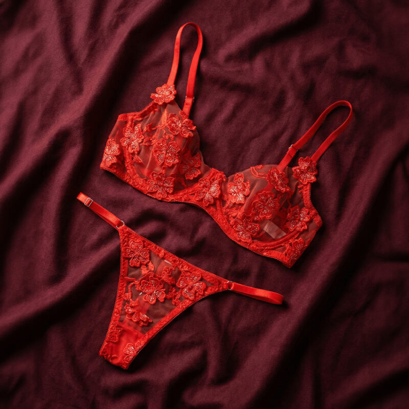 د.إ134.00Crimson Whisper Sheer Floral Lace Bikini Panty