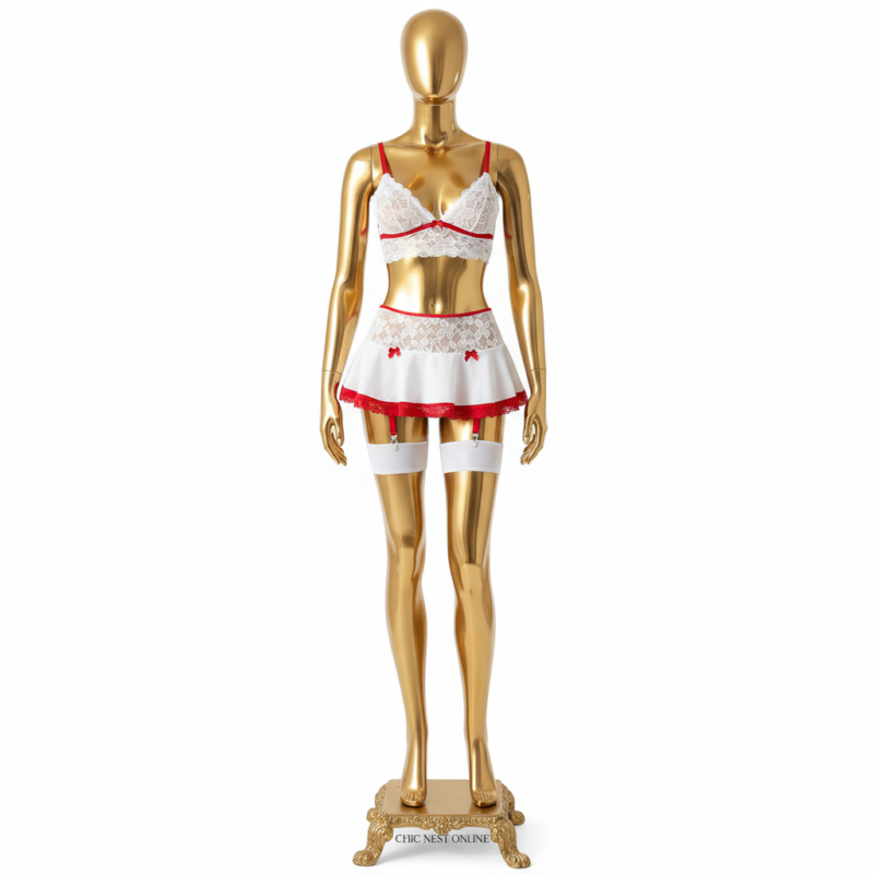 طقم دانتيل “همسة الروج” مكوّن من براليت وتنورة واسعة