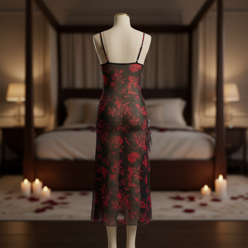 بدلة جسم من الدانتيل القرمزي مع حزام ورباط