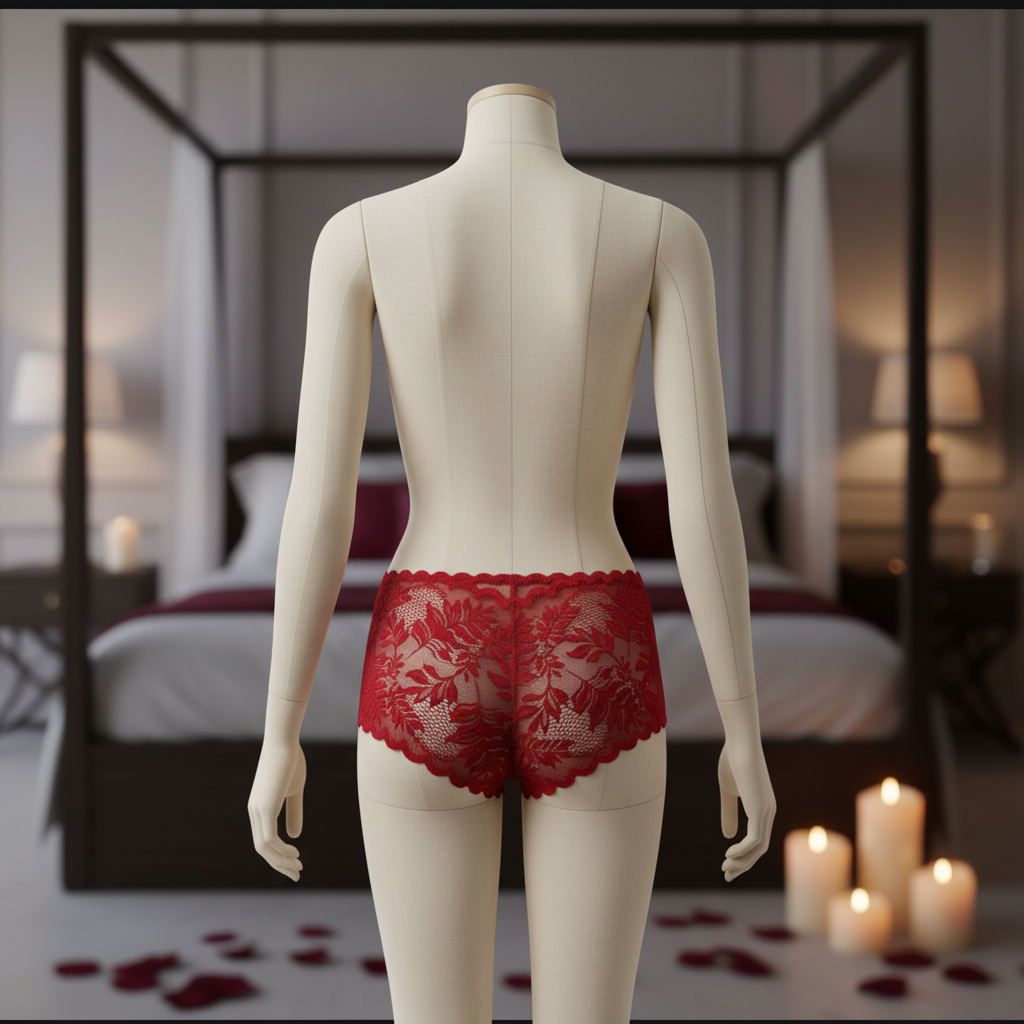 شورت بويشورت دانتيل بحواف مقوّسة بلون “سكارلت فوليِج”