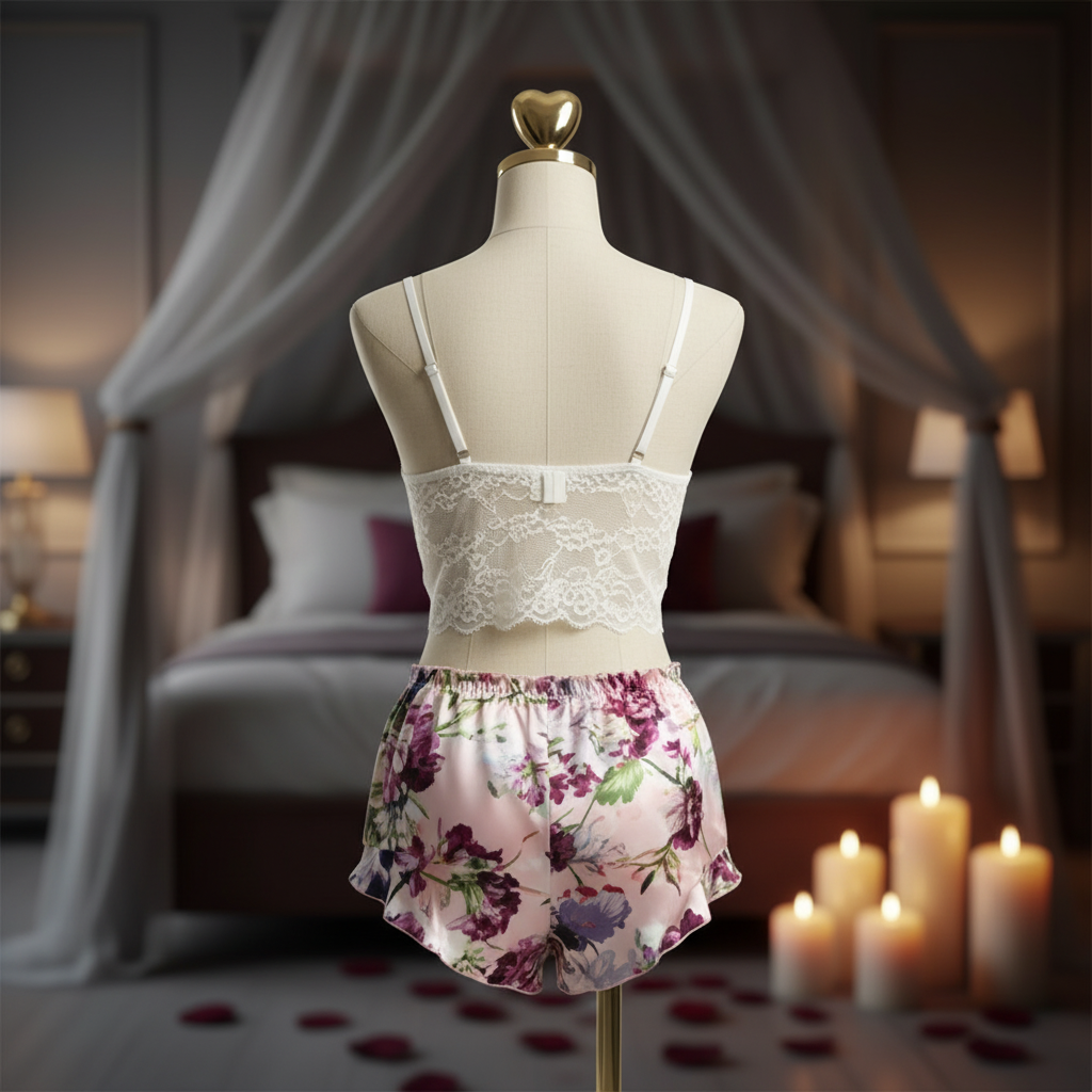 طقم حمالة صدر دانتيل مزهر وشورت مزهر
