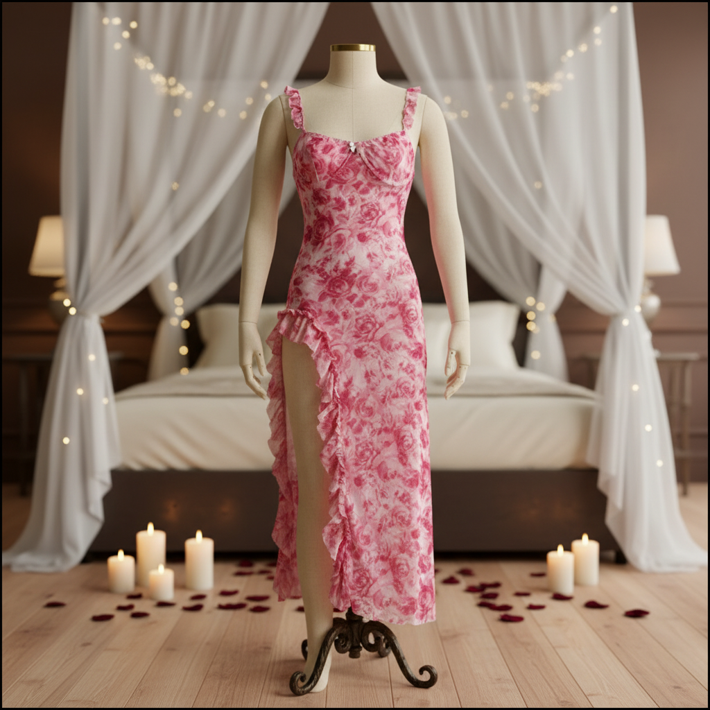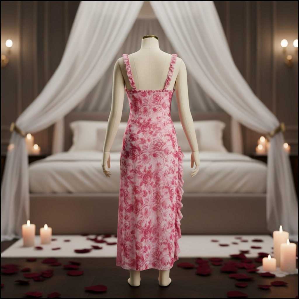 بدلة جسم مزينة بدانتيل زهري قرمزي اللون