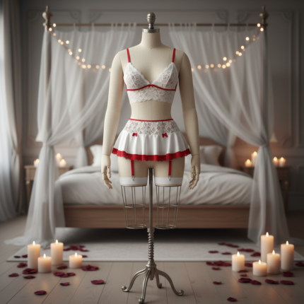 طقم دانتيل “همسة الروج” مكوّن من براليت وتنورة واسعة