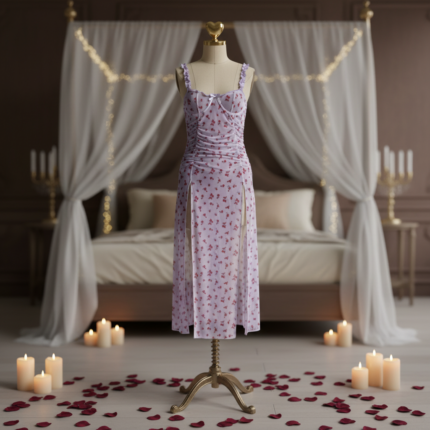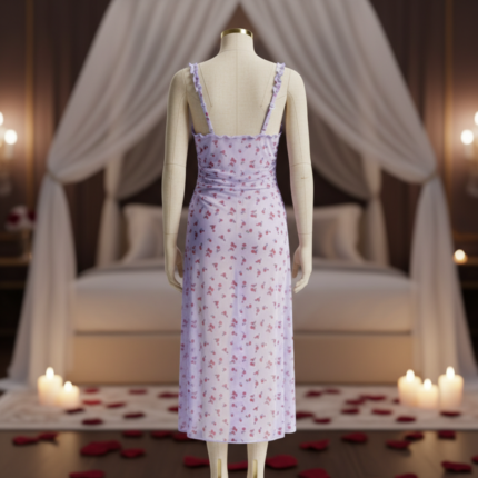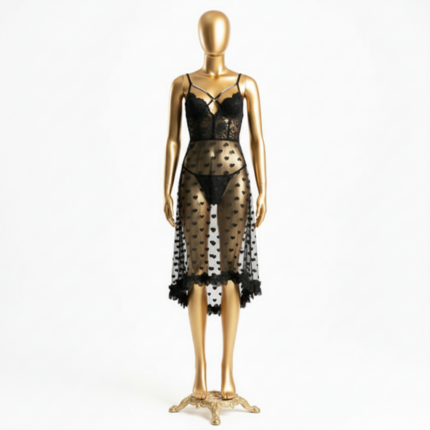 فستان دانتيل شفاف على شكل قلب بنمط رومانسي ليلي
