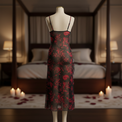 Step into soft romance with the Blush Bloom Sheer Lace Lounge Dress, a delicate piece designed to highlight feminine elegance