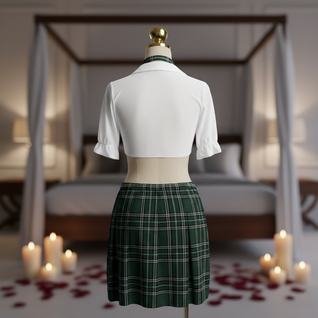 Add a playful twist to your collection with the Emerald Prep Plaid Costume Set, a bold blend of charm and confident styling. Featuring a crisp white cropped tie-front top paired with a classic green plaid skirt, this coordinated look captures a modern, flirtatious aesthetic.