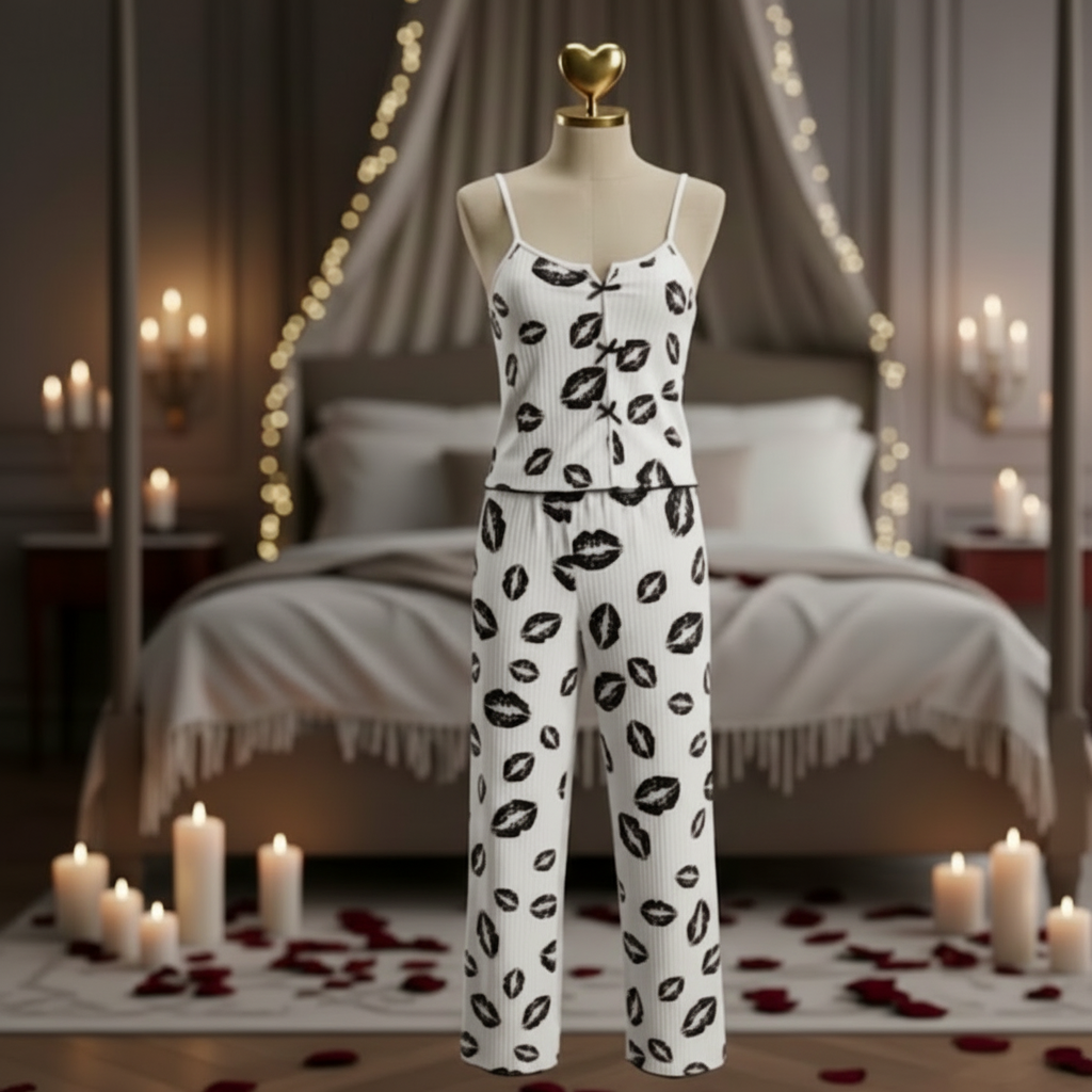 Ideal for lounging, sleepwear, or gifting, Sweet Kiss captures comfort, confidence, and playful femininity in one stylish set.